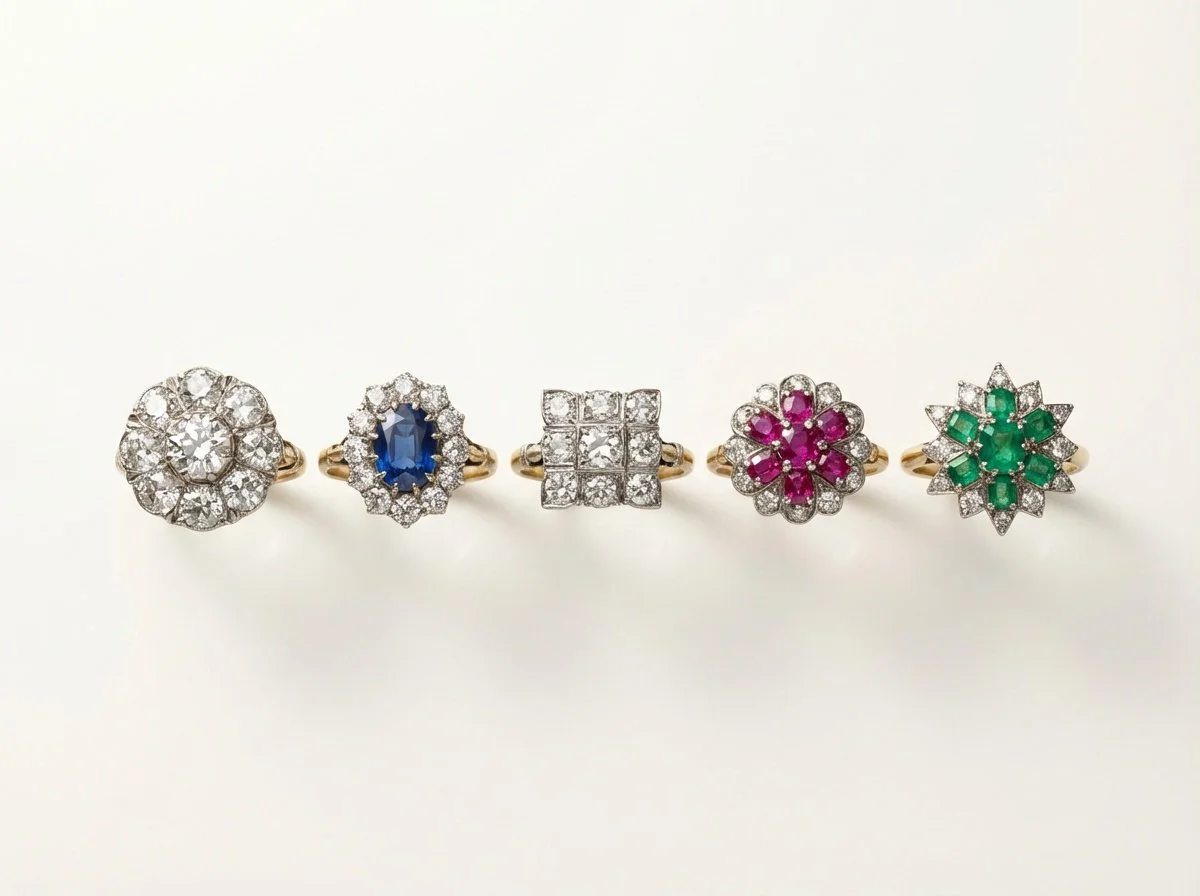Cluster rings are strongly associated with Victorian, Edwardian and later vintage jewellery, but the style remains popular. Modern buyers often choose clusters for their presence on the hand and for floral, halo, oval, or geometric designs.