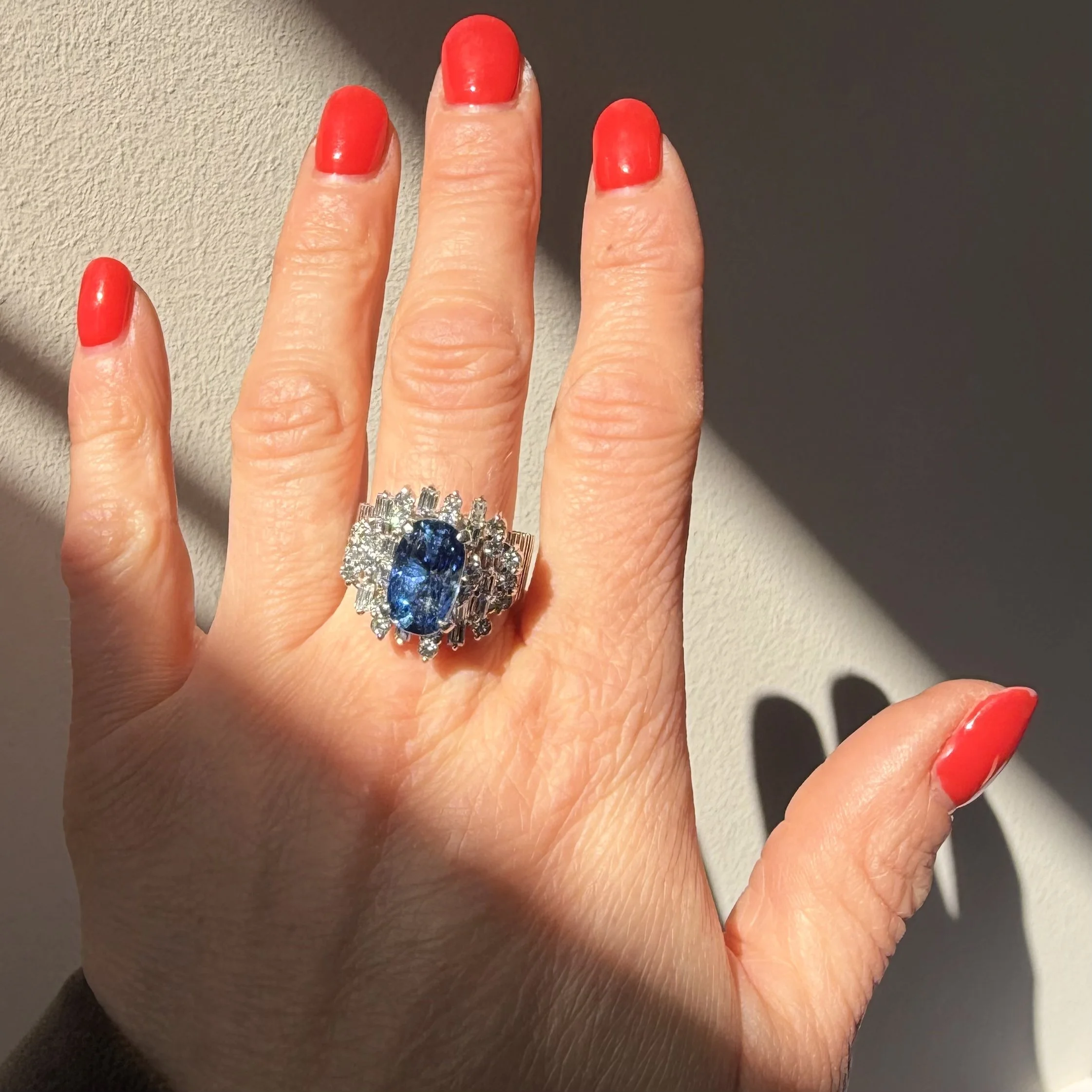Platinum Natural 5.26 ct Ceylon Sapphire and Diamond Ring