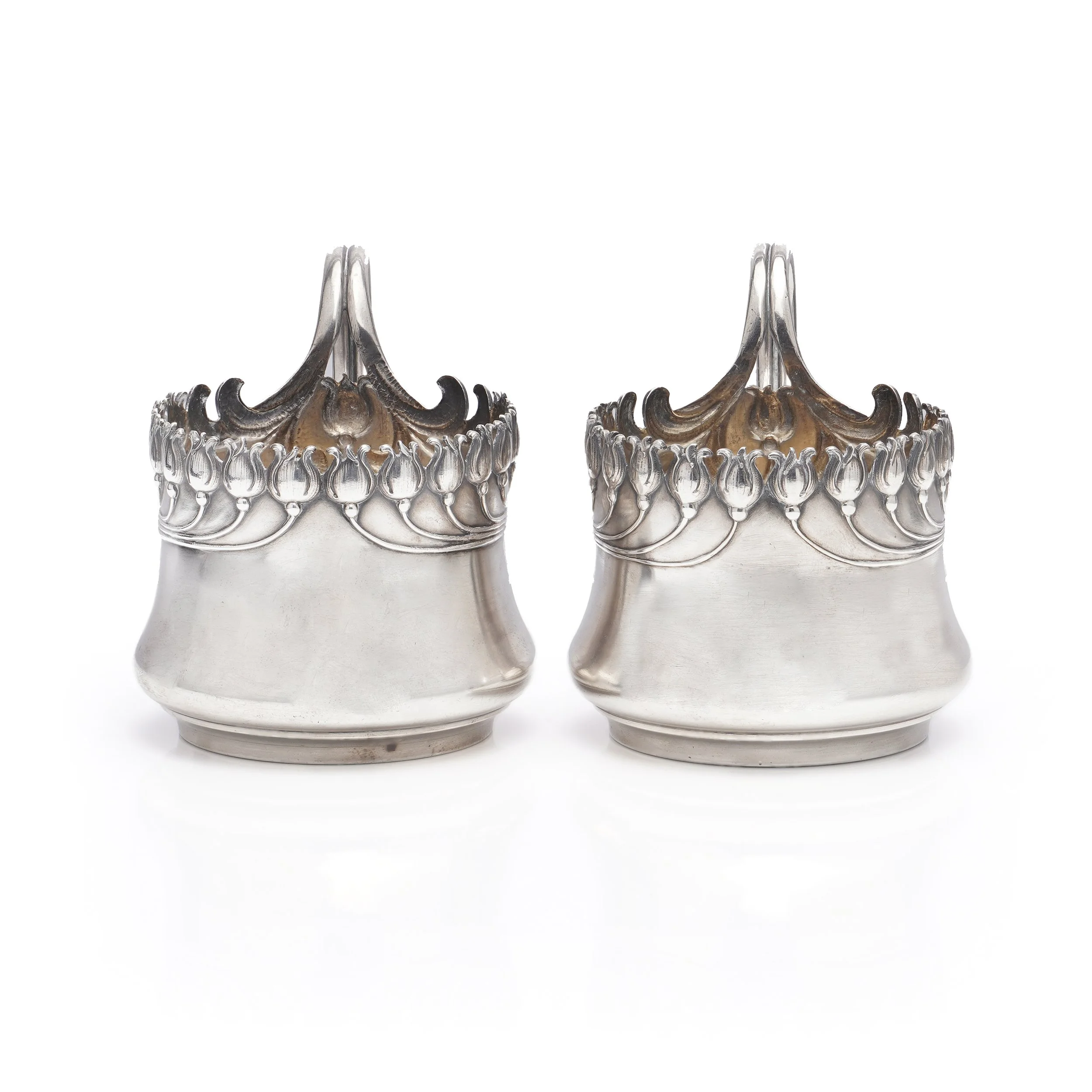Antique pair of 875 (84 Zolotniki) silver tea glass holders by V. Morozov